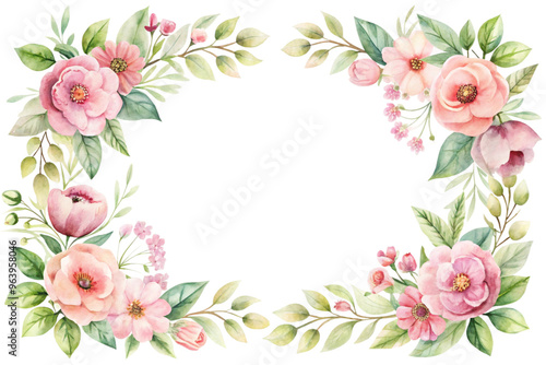 Fototapeta premium Elegant Watercolor Floral Frames Featuring Delicate Corner Blooms and Soft...