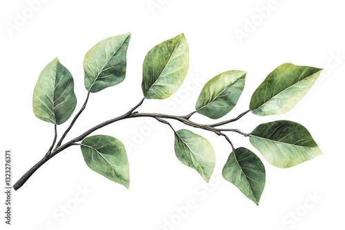 © Abdur, Fototapeta premium Elegant Watercolor Green Leaves Branch, Botanical Illustration, Nature Design Element