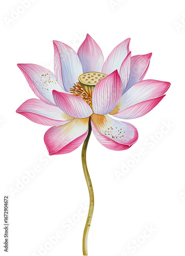 © Thanh, Fototapeta premium Elegant Watercolor Lotus Flower on White Background
