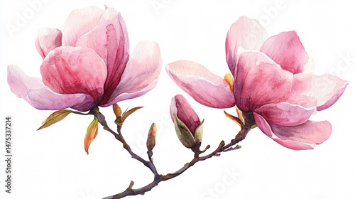 © Areena, Fototapeta premium Elegant Watercolor Magnolia Flower on White Background