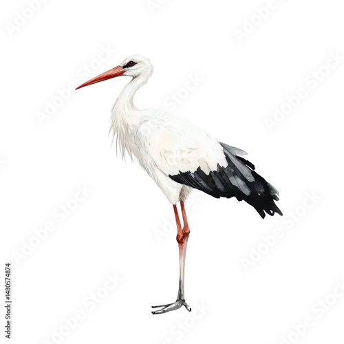 Fototapeta premium Elegant Watercolor Stork Illustration Against a Clean White Backdrop