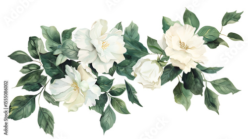 © Nafiul, Fototapeta premium Elegant Watercolor White Flower Frame Botanical Art Print on transparent background