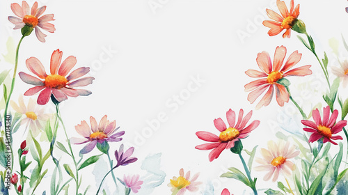 © Teeraphon, Naklejka premium Elegant wedding invitation card background . Minimal hand painted watercolor Chamomile flowers texture template background. Design for wedding, vip cover, poster, rsvp moderncard.Valentine's Day
