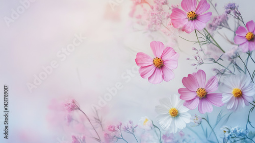 © Teeraphon, Naklejka premium Elegant wedding invitation card background . Minimal hand painted watercolor Chamomile flowers texture template background. Design for wedding, vip cover, poster, rsvp moderncard.Valentine's Day