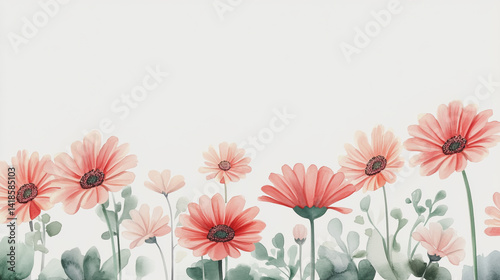 © Teeraphon, Naklejka premium Elegant wedding invitation card background . Minimal hand painted watercolor Gerbera flowers texture template background. Design for wedding, vip cover, poster, rsvp moderncard.Valentine's Day