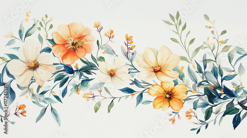 © Teeraphon, Fototapeta premium Elegant wedding invitation card background vector. Minimal hand painted watercolor botanical flowers texture template background. Design for wedding, vip cover, poster, rsvp moderncard.Valentine's Day
