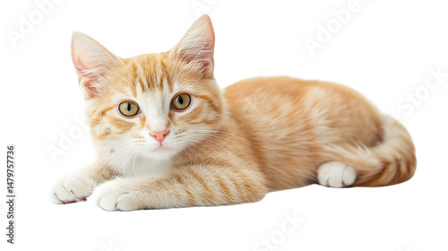 © Ab, Obraz premium Elegant White and Red Cat Posing Alone on White Background