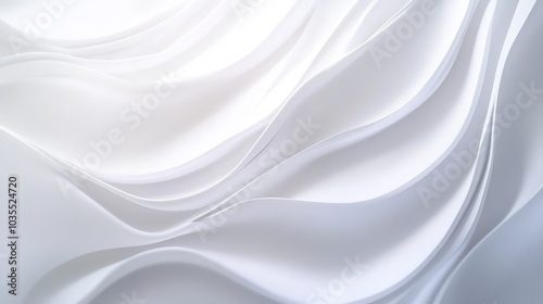 Fototapeta premium Elegant white backdrop with flowing wave patterns, creating a serene and modern atmosphere, perfect for showcasing minimalist designs and artistic concepts.