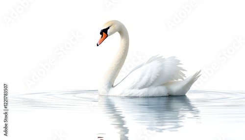 © Cipliart, Fototapeta premium Elegant White Background Swan Gliding Gracefully on Tranquil Water Surface with Reflected Ripples