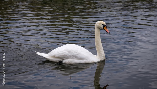 © AugmentArt, Naklejka premium Elegant white bird gliding across the water surface.