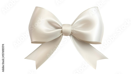 © Ai, Naklejka premium Elegant white bow with soft ribbon folds and simple design on white background
