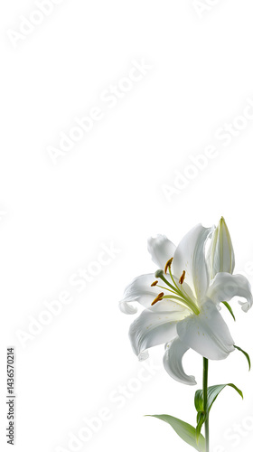 © kim jji, Naklejka premium Elegant White Calla Lily on Transparent Background – Realistic High-Quality Flower Illustration for Sympathy, Memorial, Wedding, or Thank You Designs.