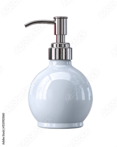 © Phanupong, Obraz premium Elegant White Ceramic Soap Dispenser Pump Bottle for Bathroom isolated on transparent background