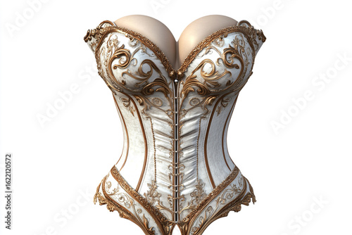 Fototapeta premium Elegant white corset with ornate gold trim, creating a vintage, luxurious,...