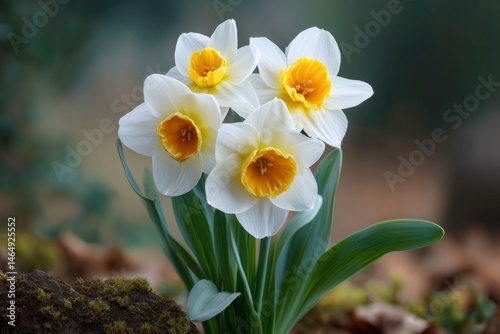 © Dzikrul Husnani, Naklejka premium Elegant White Daffodils: A Springtime Floral Still Life