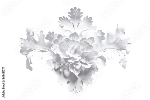 © Jeerawut, Naklejka premium Elegant white decorative floral design element with intricate details, perfect for embellishing various creative and artistic projects.