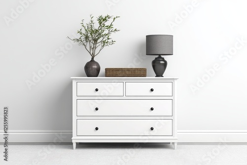 Fototapeta premium Elegant white dresser adorned with decor elements in a serene interior setting