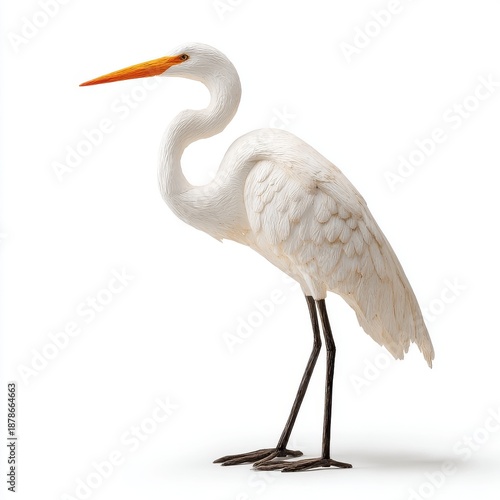 © Yothin, Obraz premium Elegant White Egret Bird Sculpture with Detailed Feather Texture on White Background