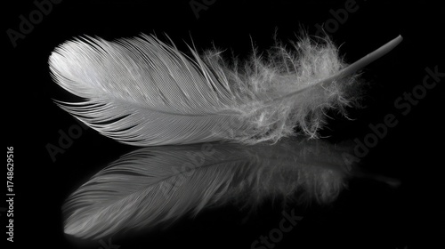 © Latif, Obraz premium Elegant white feather with reflection on dark background