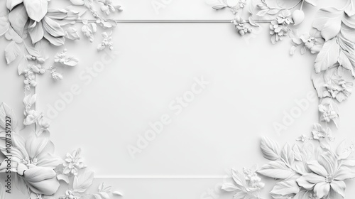 Obraz premium Elegant white floral frame with intricate leaf and flower details on subtle background
