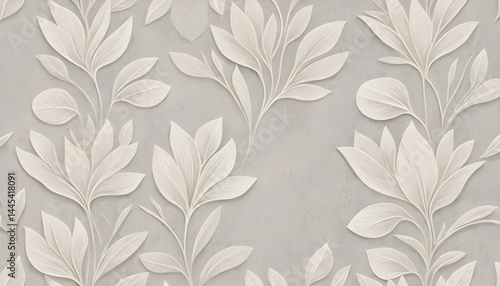 © ลลิดา ไชยศรีษะ, Obraz premium Elegant White Floral Pattern on Grey Background