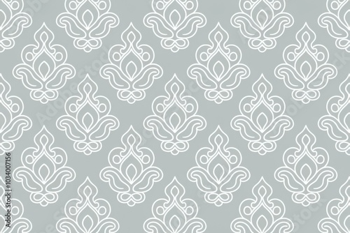 Fototapeta premium Elegant White Floral Pattern Soft Gray Background - Stylish Decorative Design Home Decor, Textiles, Wallpaper