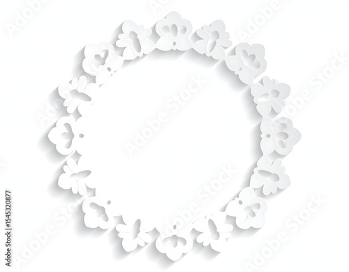 Obraz premium Elegant White Floral Round Frame Paper Cut Style Wedding Invitation Design...