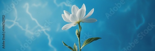 Naklejka premium Elegant White Flower Blooming Against Clear Blue Sky – Nature Photography...