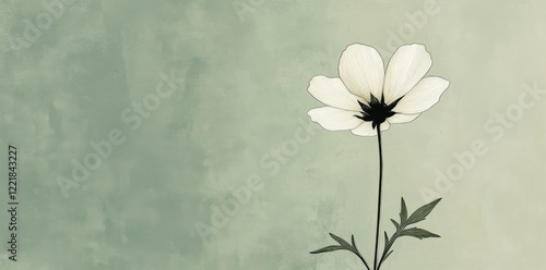 © NpicArt, Fototapeta premium Elegant White Flower on Sage Green Background