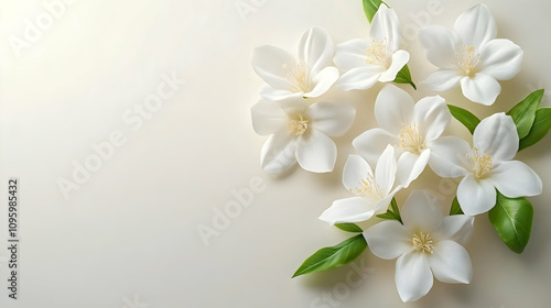 © HQAsset, Fototapeta premium Elegant White Flowers Arranged on Beige Background, Creates a Serene and Calming Aesthetic