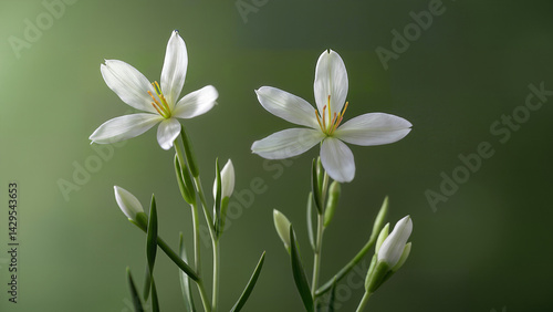 © Andriana Hoshko, Naklejka premium Elegant white flowers with green stems and buds, perfect for spring, nature, and floral backgrounds.