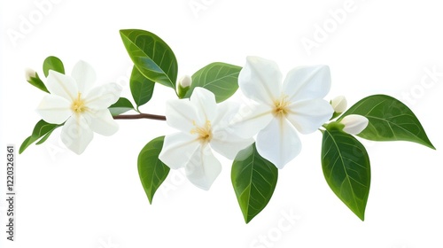 © Zidan, Fototapeta premium Elegant White Gardenia Branch with Lush Green Leaves