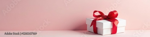Fototapeta premium Elegant white gift box, tied with a vibrant red bow , red bow, season, anniversary