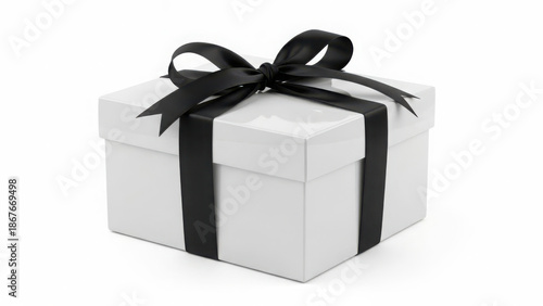 Obraz premium Elegant white gift box with black ribbon, isolated on transparent background