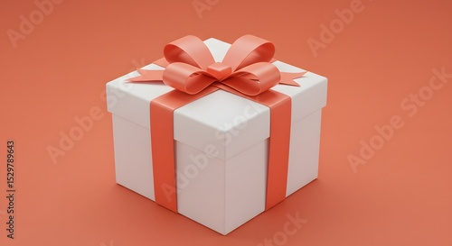 Obraz premium Elegant White Gift Box with Coral Ribbon Perfect Present Illustration