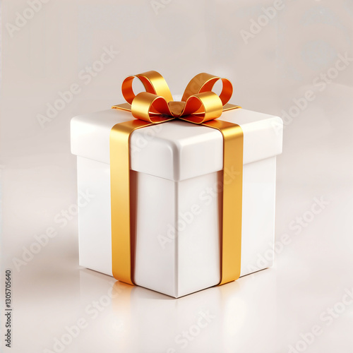 © Mohammad, Obraz premium Elegant White Gift Box with Golden Ribbon and Bow