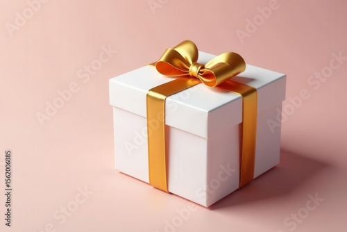 © Pornchai, Obraz premium Elegant white gift box with golden ribbon bow , glossy, present, product