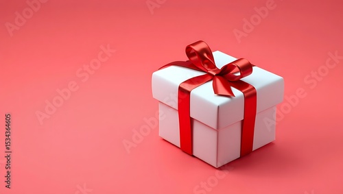 © Riazul, Fototapeta premium Elegant White Gift Box with Red Ribbon Perfect for Celebrations and Special Occasions