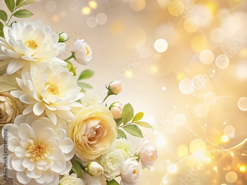 Obraz premium Elegant White & Gold Floral Wedding Invitation Background with Bokeh