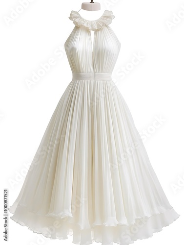 © NatthaphonSiri, Fototapeta premium Elegant White Halter Dress with Ruffled Collar and Pleated Skirt.
