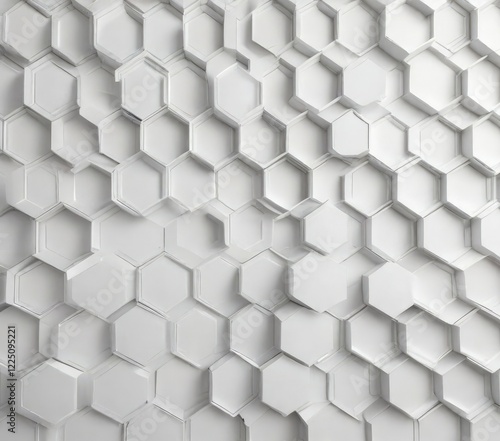 © Sathaporn Buarabut, Naklejka premium Elegant white hexagon grid background with geometric shapes, background, elegant