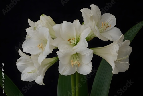 © sahina, Fototapeta premium Elegant White Hippeastrum Flowers Bloom Closeup