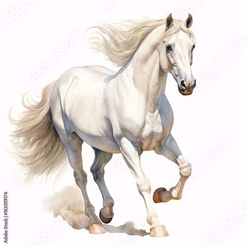 © Studicon, Obraz premium Elegant white horse gallops with its mane flowing on a white background
