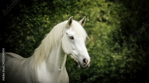 © MinimalZine, Fototapeta premium Elegant White Horse Portrait Against a Soft Green Background