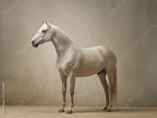 © DenS, Fototapeta premium Elegant White Horse Standing Proudly in Studio Light
