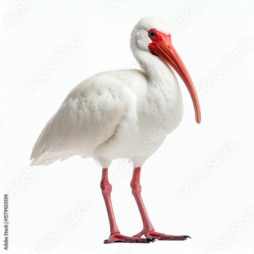 © Regha, Fototapeta premium Elegant white ibis portrait showcasing its vibrant beak and plumage on white background