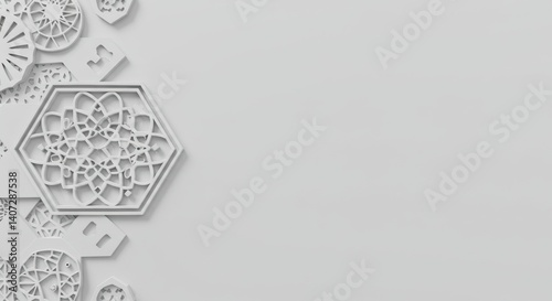 Fototapeta premium Elegant White Islamic Geometric Pattern Design Background for Ramadan or Eid