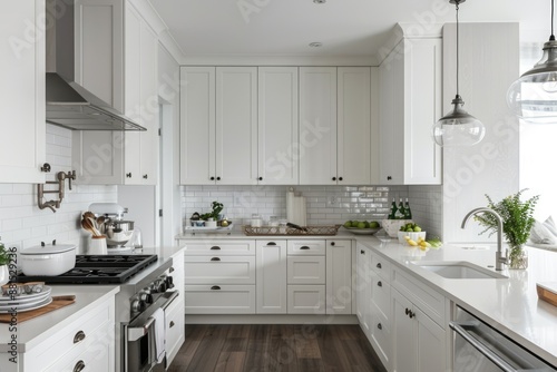 © kitipol, Fototapeta premium Elegant white kitchen with cozy textures and minimalist aesthetic