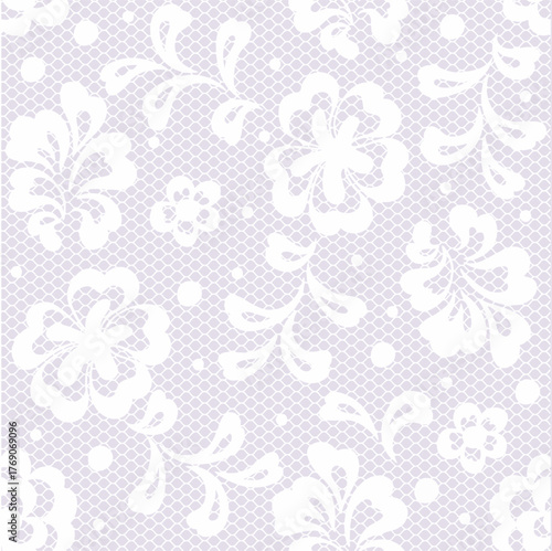© rey, Obraz premium Elegant White Lace Floral Seamless Background on Lavender