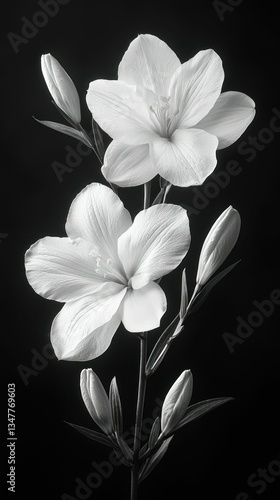© Ali, Fototapeta premium Elegant white lilies bloom dark background